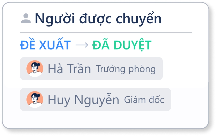 Người được chuyển: Chỉ ra chính xác người hoặc nhóm người có quyền chuyển đến trạng thái đích. Đảm bảo không vượt quá quyền hạn.