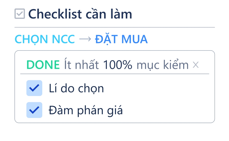 Mục kiểm: Đặt ra điều kiện hoàn thành một phần hoặc toàn phần cho các checklist công việc cần làm