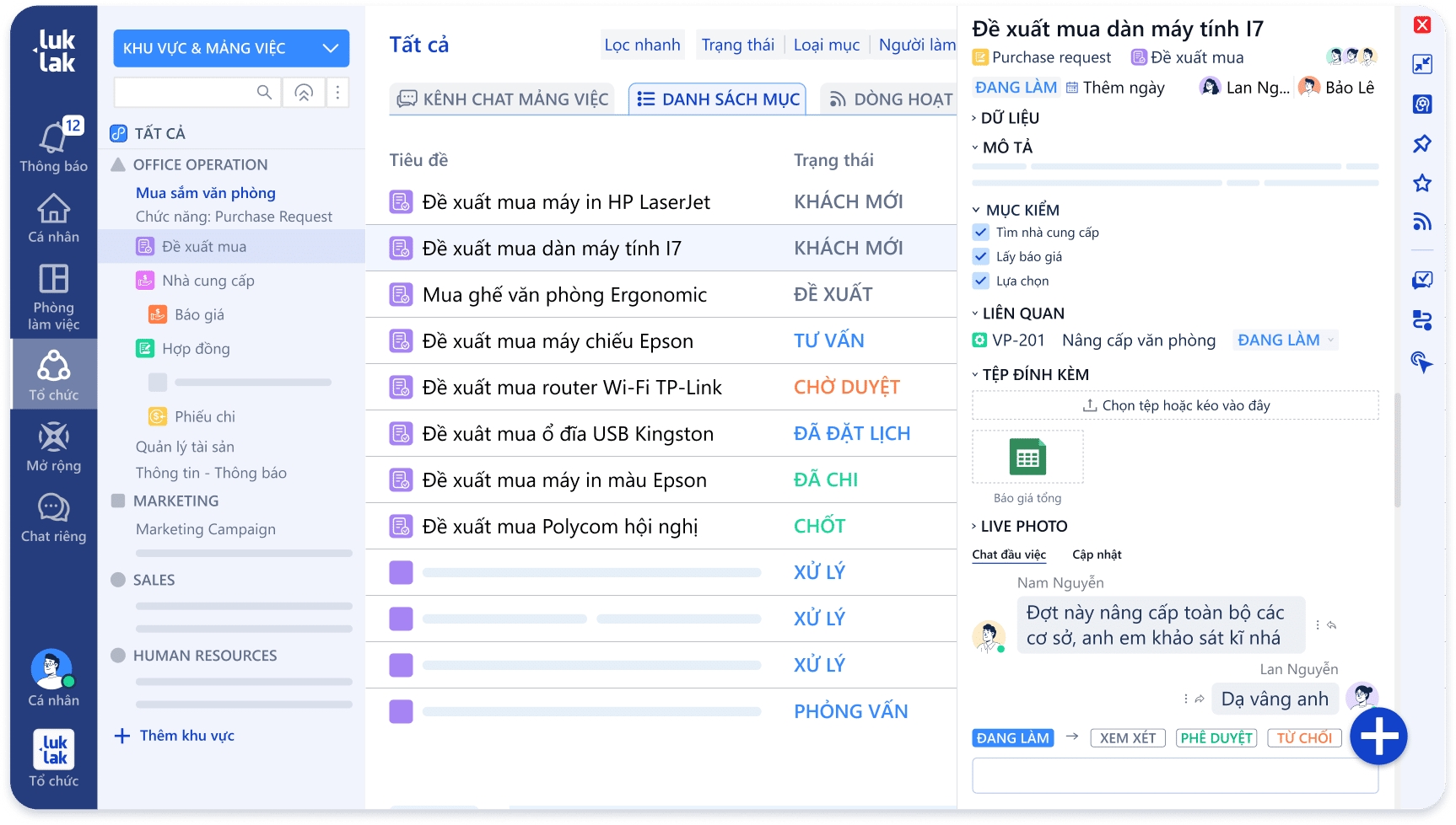 Quy trình chuẩn hoá chính là yếu tố cốt lõi để xây dựng và vận hành hệ thống. Với nhiều phần mềm thì workflow là một tính năng đặc thù, mỗi một quy trình làm việc sẽ có một app riêng lẻ ví dụ như phần mềm HRM, CRM,... và chỉ ở app đó mới có tính năng workflow đó. Điều này dẫn đến việc doanh nghiệp phải dùng nhiều phần mềm khác nhau để vận hành, quản lý công việc và tốn nhiều chi phí để sử dụng. Còn ở luklak thì workflow là thuộc tính phổ quát, mặc định của issue (universal smart object) nên tất cả các công việc, chức năng tạo nên từ issue, dù lớn hay nhỏ, đều có workflow.